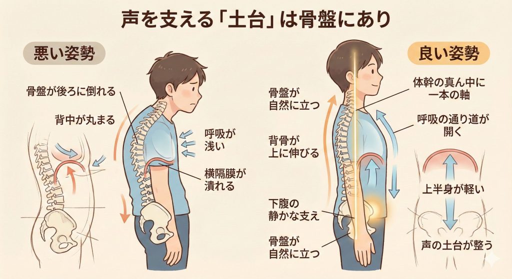【まとめ:声は骨盤から始まり、背骨を通って響く】
